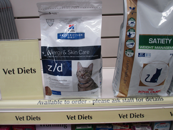 Flea treatments are separated according to three functions – flea kill, prevention and home treatment. Again, easy to navigate and it reinforces to owners that they need to treat the home as well. There’s also a small display on vet diets, drawing customers’ attention to the fact that Cookes can order in any prescription diet that their pets might need.