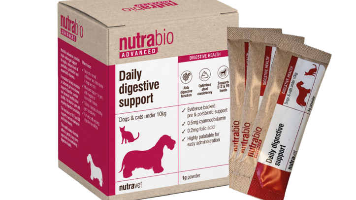 Nutravet has launched Nutrabio Advanced Daily Digestive Support, a powder supplement with integrated B vitamin support for dogs and cats.