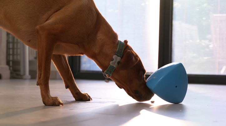 The Roolo features a specially-designed shape to produce an erratic movement when rolled, promoting scent work, problem-solving, slow feeding, and active play in order to release the treats hidden inside. As such, it provides enrichment and exercise as well as engaging dogs’ natural instincts and can help to prevent age-related cognitive decline, claims the manufacturer.