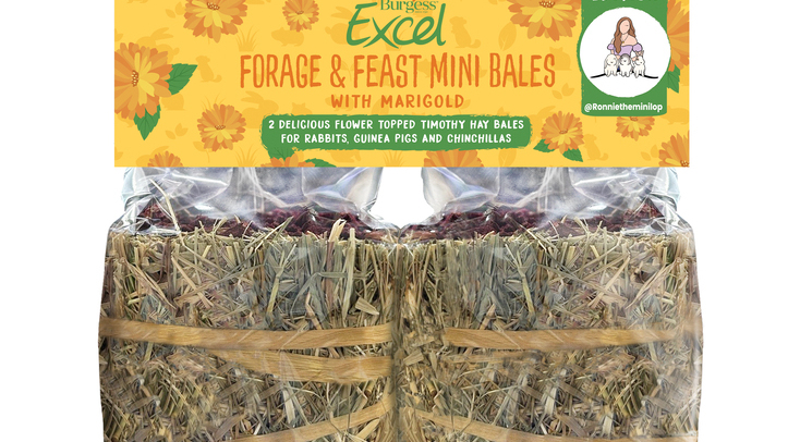 Joining the brand’s mini bale range is the Forage and Feast Twin Mini Bale with Marigold (RRP £7.49). Made with 100% Timothy hay and natural ingredients, the hay-based snack is designed to help support digestive health while encouraging natural foraging behaviour. The launch has been supported through collaboration with popular rabbit influencer @ronnietheminilop.