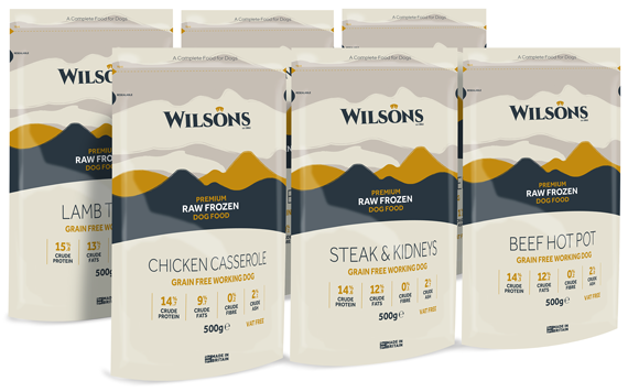 Wilsons Raw Frozen Range is available in choice of standard varieties: Beef Hotpot, Salmon Medley, Pork Casserole, Lamb Tagine, Chicken and Vegetables and Turkey Dinner.